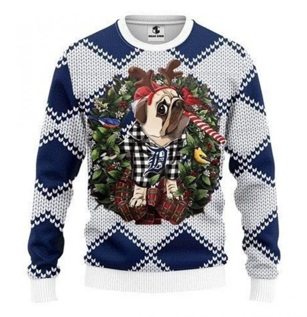Detroit Tigers Pug Dog Ugly Christmas Sweater