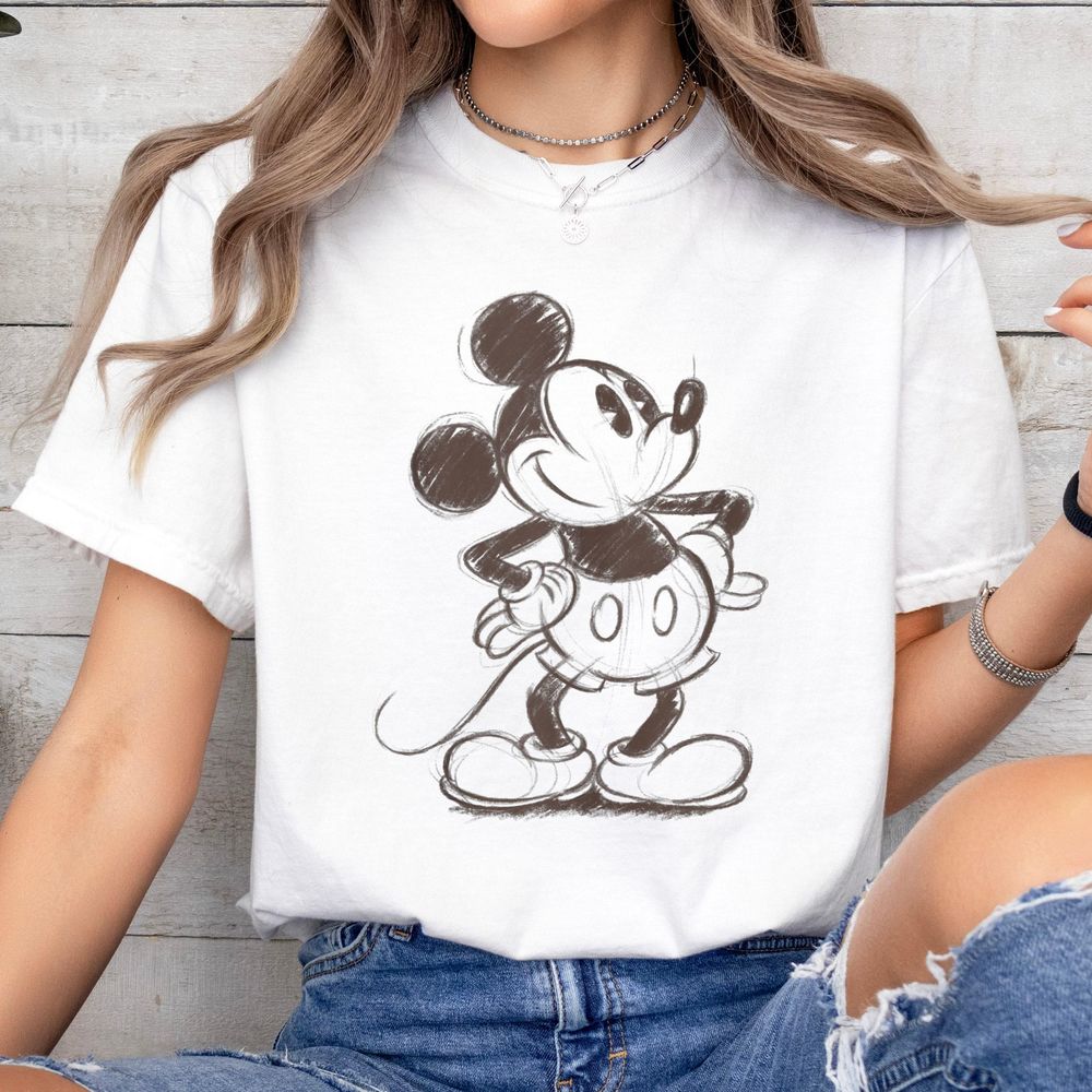 Disney Mickey And Friends Mickey Mouse Sketch Portrait Unisex Tee Adult Vuitino Merch