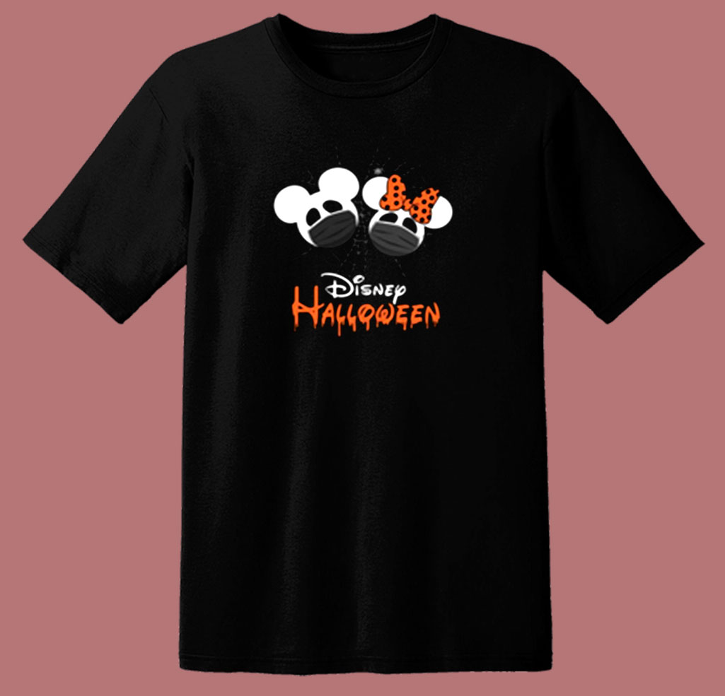 Disney Mickey And Minnie Halloween Quarantine Mask On Fun Together Holiday 007 80s T Shirt