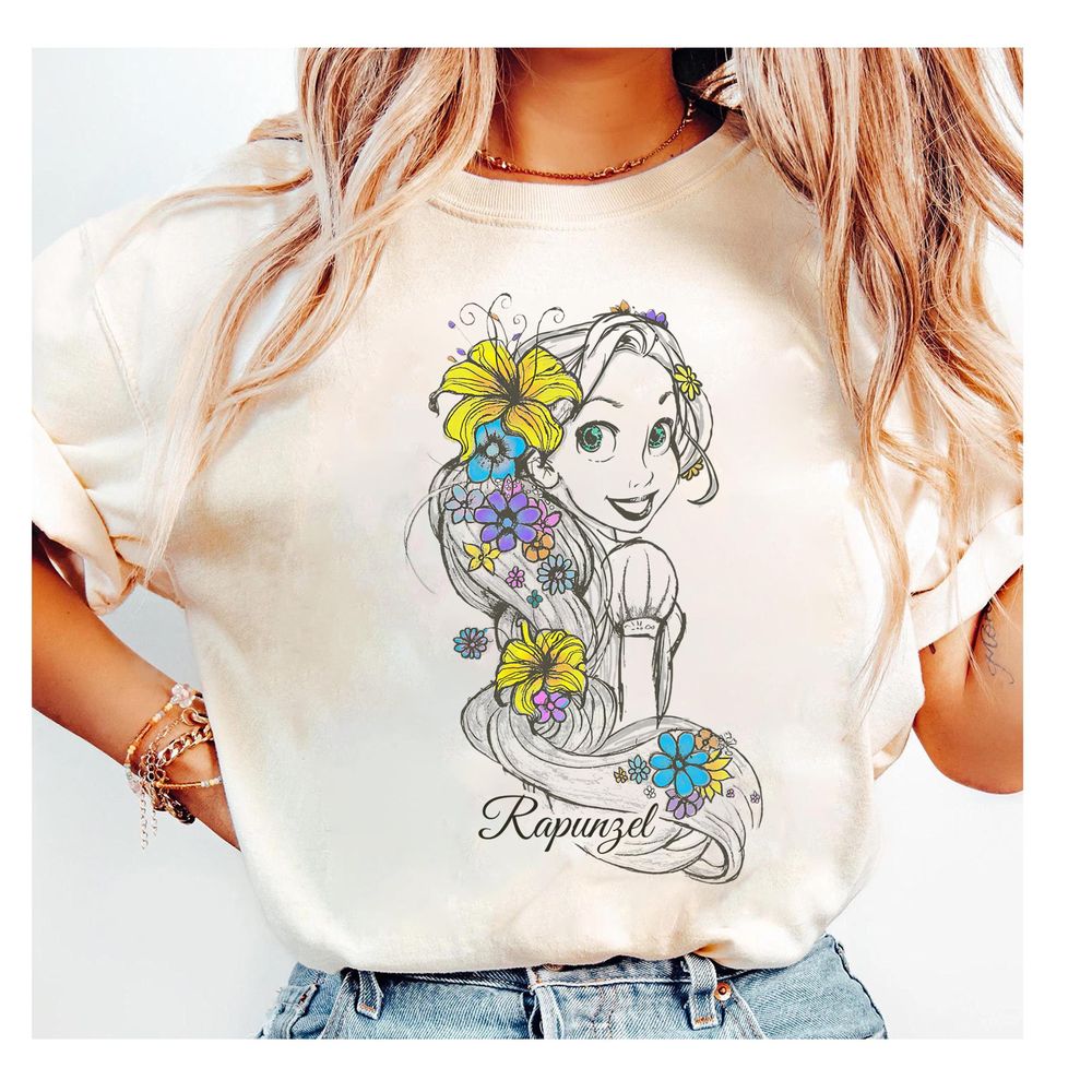 Disney Rapunzel Princess Tangled Rapunzel Floral Sketch Portrait Vuitino Merch