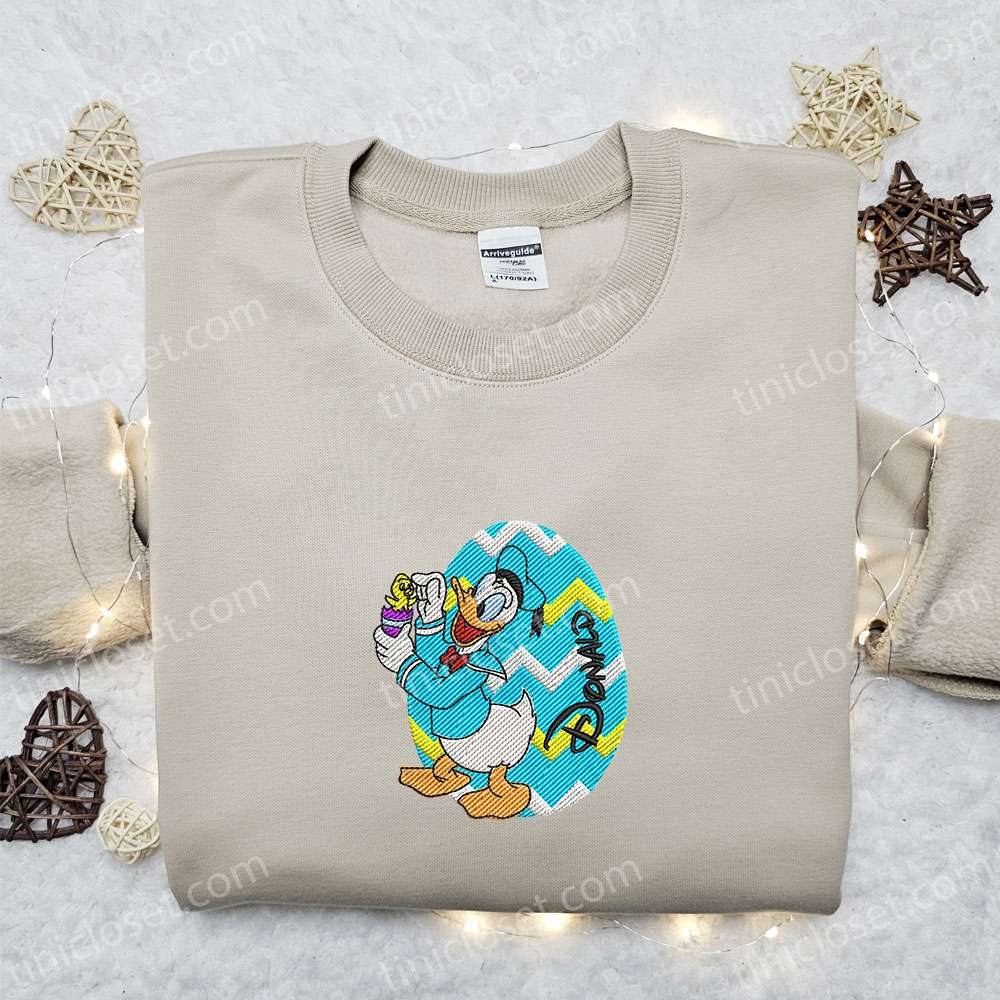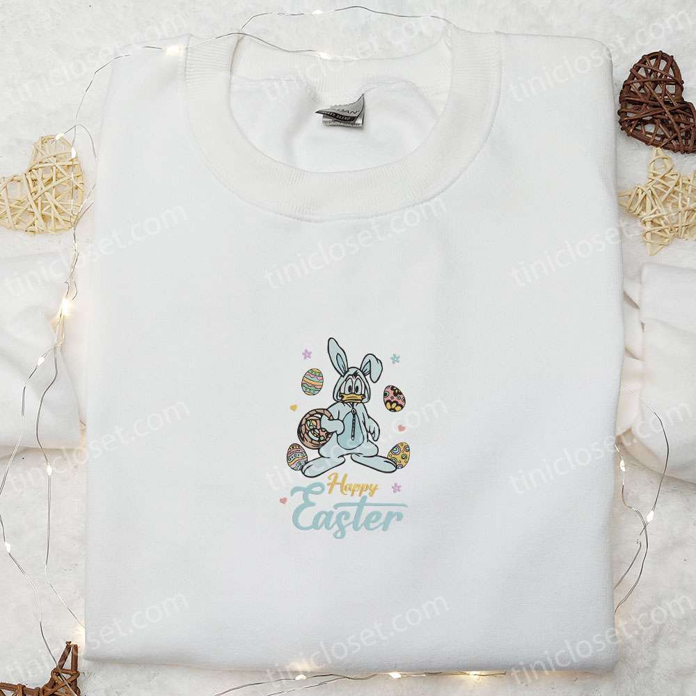 Donald Duck Happy Easter Embroidered Shirt, Disney Characters Embroidered Hoodie, Thanksgiving Day Gift Ideas