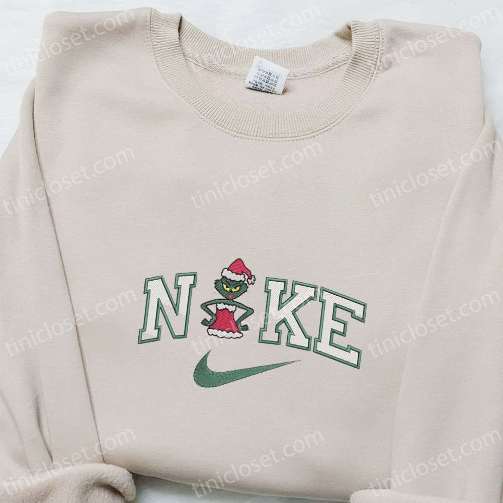 Female Grinch X Nike Embroidered Shirt, Christmas Embroidered Hoodie, Best Gifts For Family