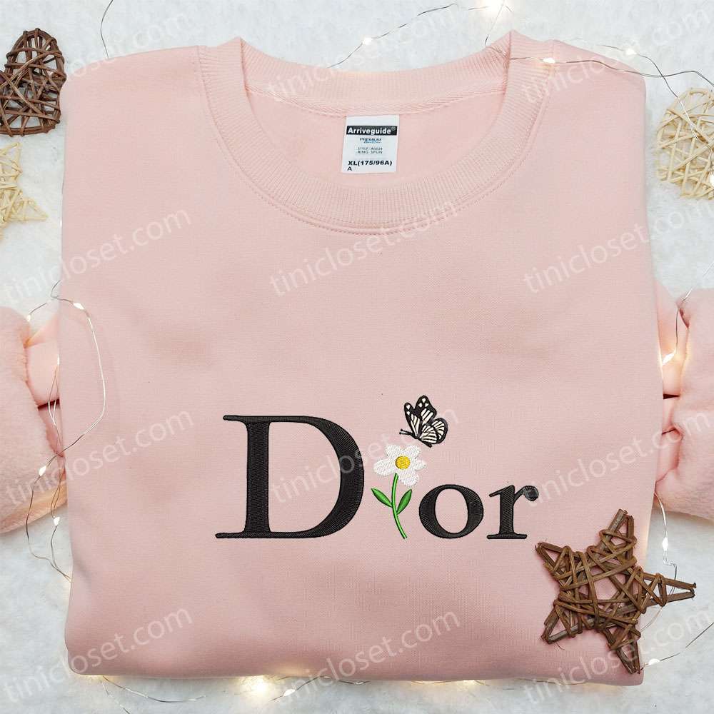 Flower Butterfly X Dior Embroidered Shirt, Brand Logo Embroidered Hoodie, Best Gifts For Family