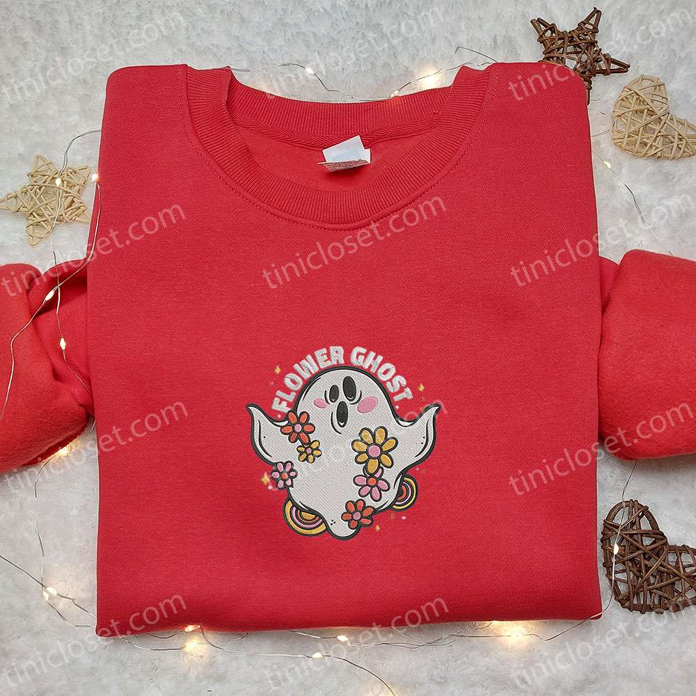 Flower Ghost Embroidered Sweatshirt, Cute Halloween Embroidered Hoodie, Best Halloween Gift Ideas