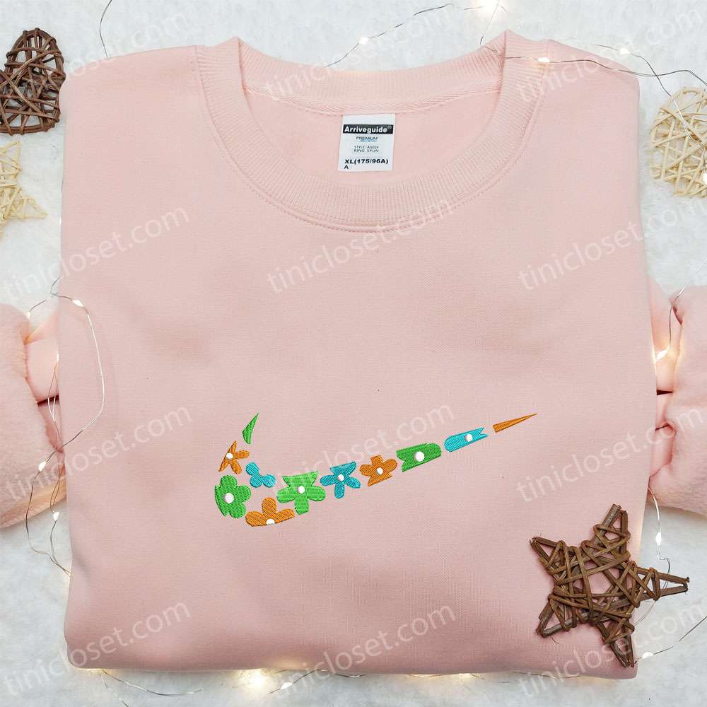Flowers Nike Swoosh Embroidered Shirt, Nike Inspired Embroidered Hoodie, Best Gift Ideas For Girls