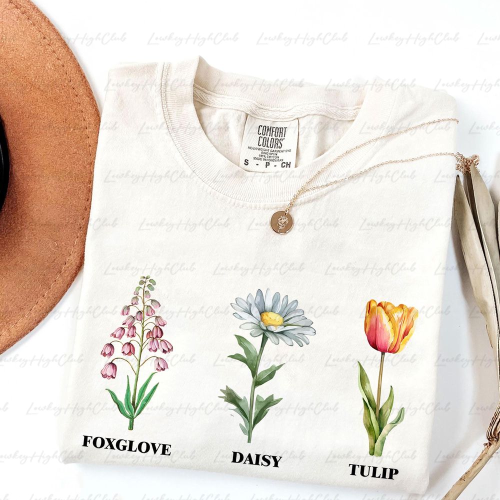 Flower Family Custom Name Embroidered Shirt, Custom Embroidered Hoodie, Mother’s Day Gift Idea