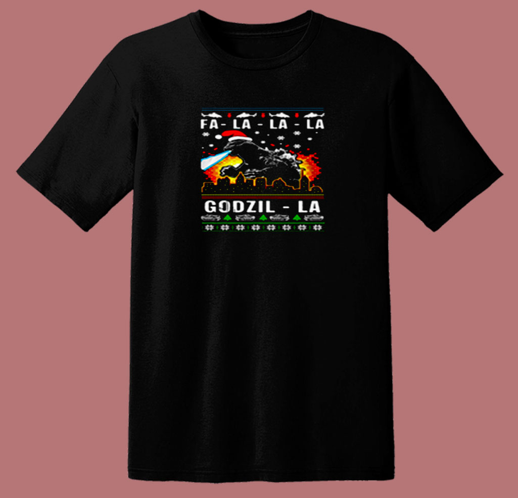 Funny Falalala Godzilla Christmas 80s T Shirt