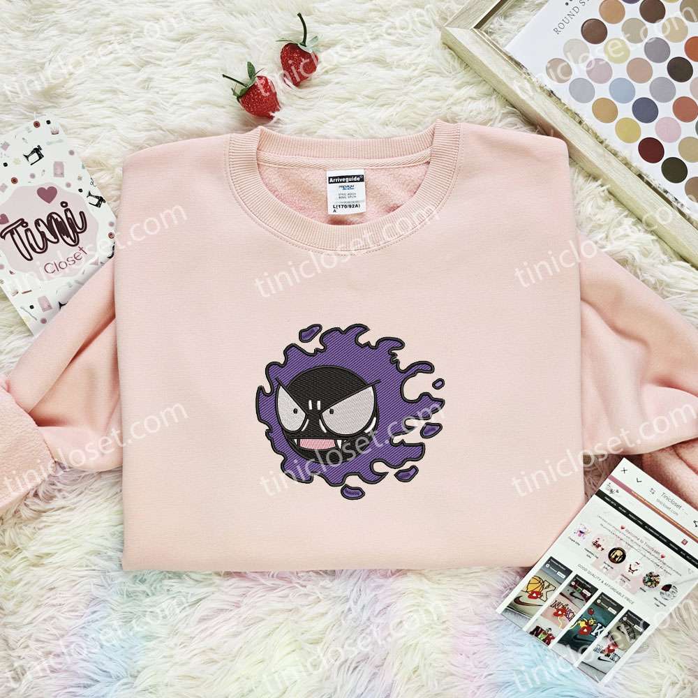 Gastly Haunter Gengar X Nike Swoosh Embroidered Shirt, Pokemon Anime Embroidered Hoodie, Best Gift Idea
