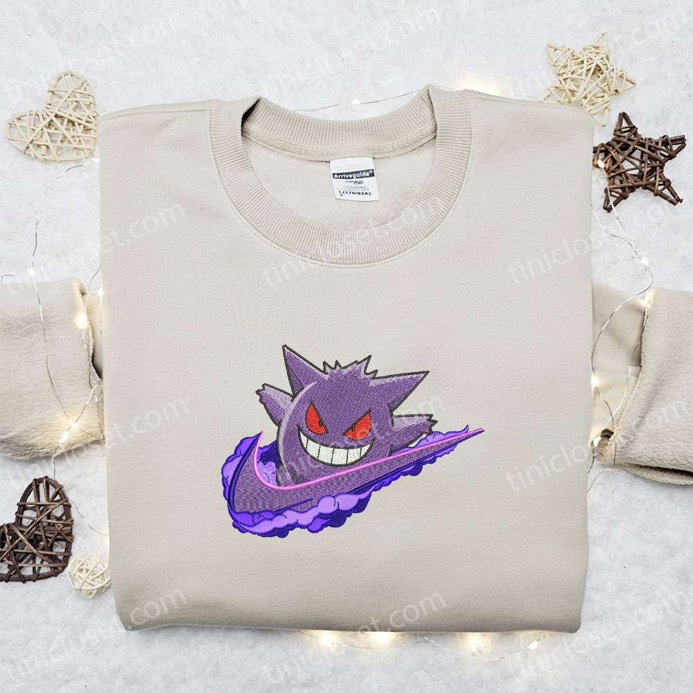Gengar X Nike Swoosh Embroidered Shirt, Pokemon Anime Embroidered Hoodie, Best Gift Idea