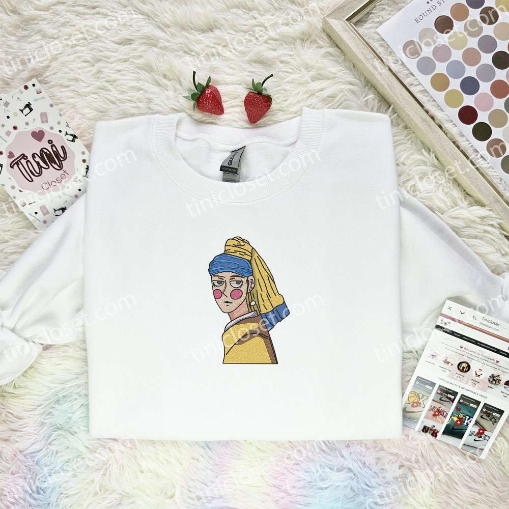 Girl With The Pearl Earring Parody Embroidered Shirt