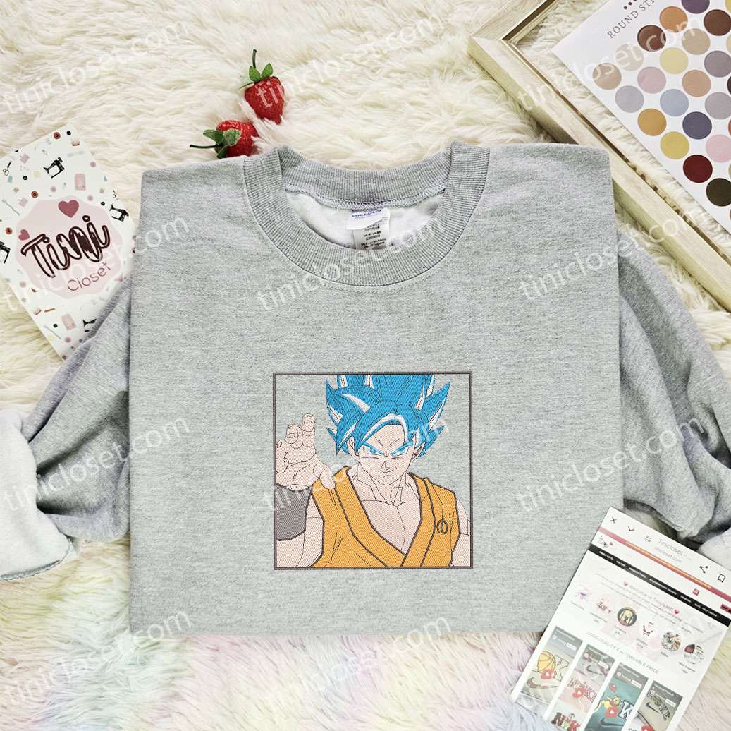 Goku Blue Hair Dragon Ball Anime Embroidered Shirt