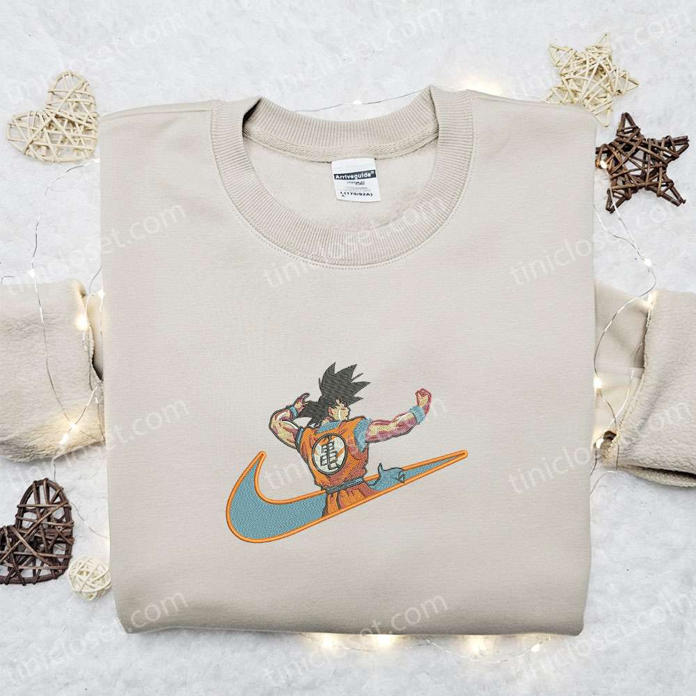 Goku X Nike Swoosh Embroidered Shirt, Dragon Ball Anime Embroidered Hoodie, Nike Inspired Embroidered T-shirt