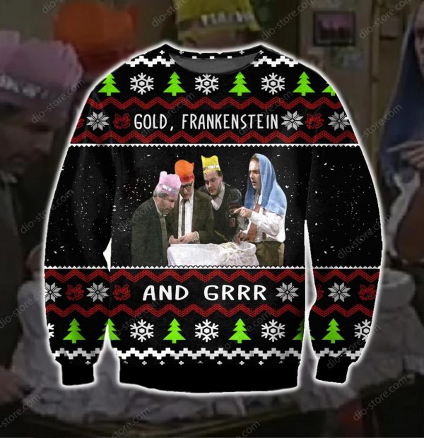 Gold Frankenstein And Grr Knitting Pattern 3d Print Ugly Sweater