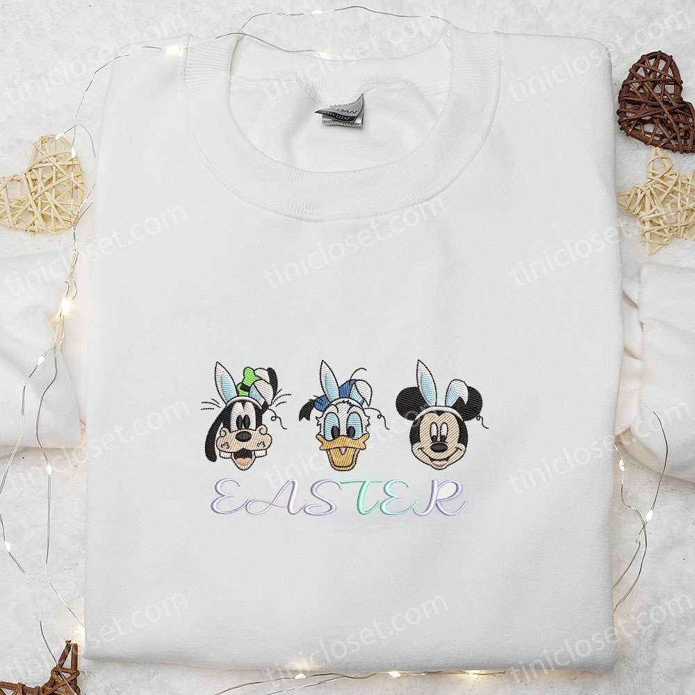 Goofy Donald And Mickey Happy Easter Embroidered Shirt, Disney Characters Embroidered Hoodie, Thanksgiving Day Gift Ideas