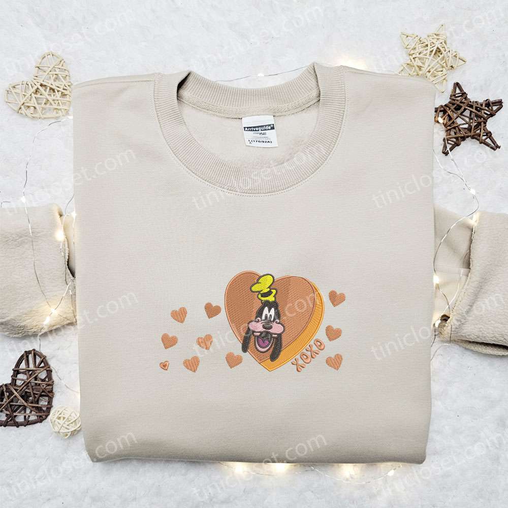 Goofy Hearts Cutie Embroidered Shirt, Disney Characters Embroidered Hoodie, Best Gift For Family