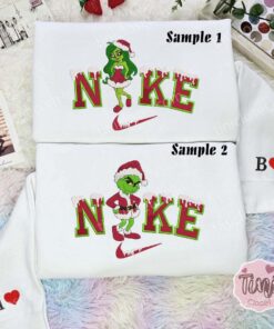 Grinch And Mrs Grinch Xmas Embroidered Shirts, Christmas Embroidered Couples Shirts