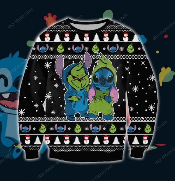 Grinch And Stitch Funny Knitting Pattern 3d Print Ugly Sweater