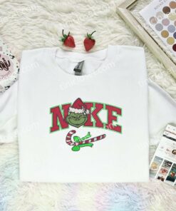 Grinch Santa And Caramel Cane Christmas Embroidered Shirt