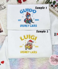 Guido And Luigi Christmas Cars Disney Characters Embroidered Couples Shirts