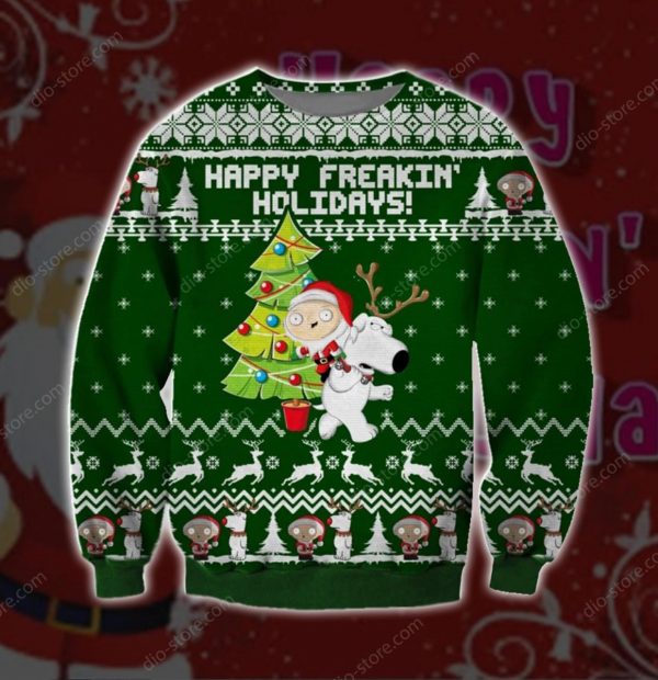 Happy Freakin Holidays Knitting Pattern 3d Print Ugly Christmas Sweater