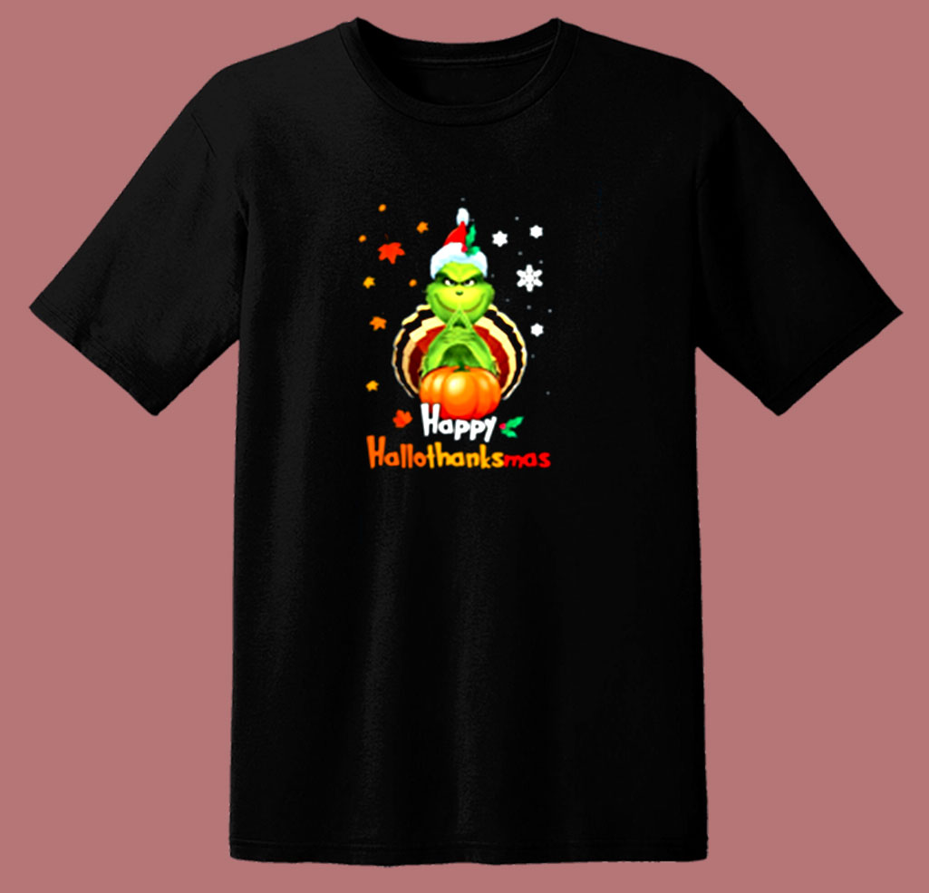 Happy Hallothanksmas The Grinch Pumpkin Halloween Thanksgiving Christmas 80s T Shirt