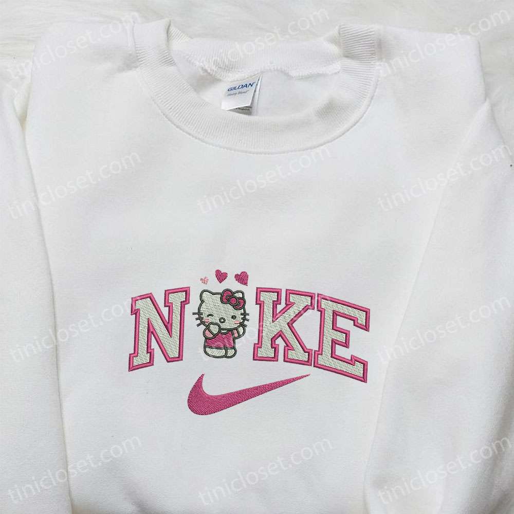 Hello Kitty Pink Hearts X Nike Embroidered Shirt, Cartoon Embroidered Hoodie, Valentine Gift Idea