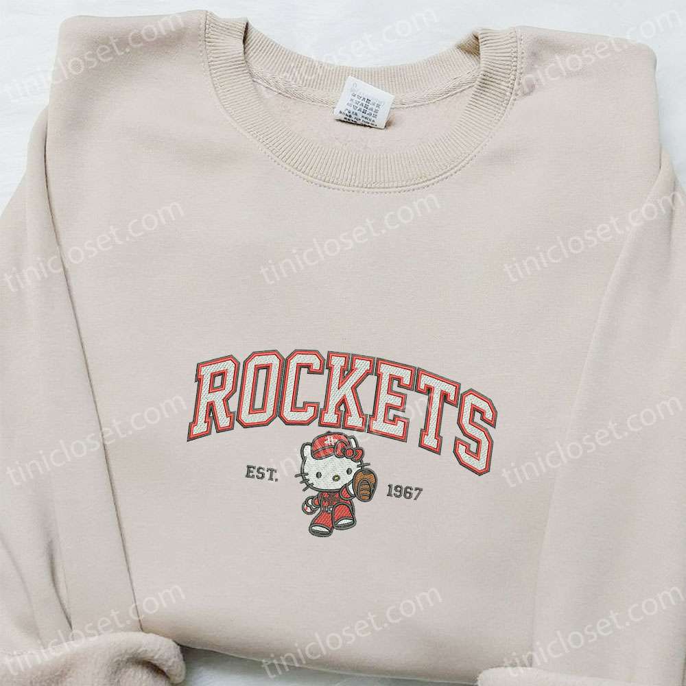 Hello Kitty Rockets Est 1967 Embroidered Shirt, Mlb Sports Embroidered Hoodie, Nike Inspired Embroidered Shirt