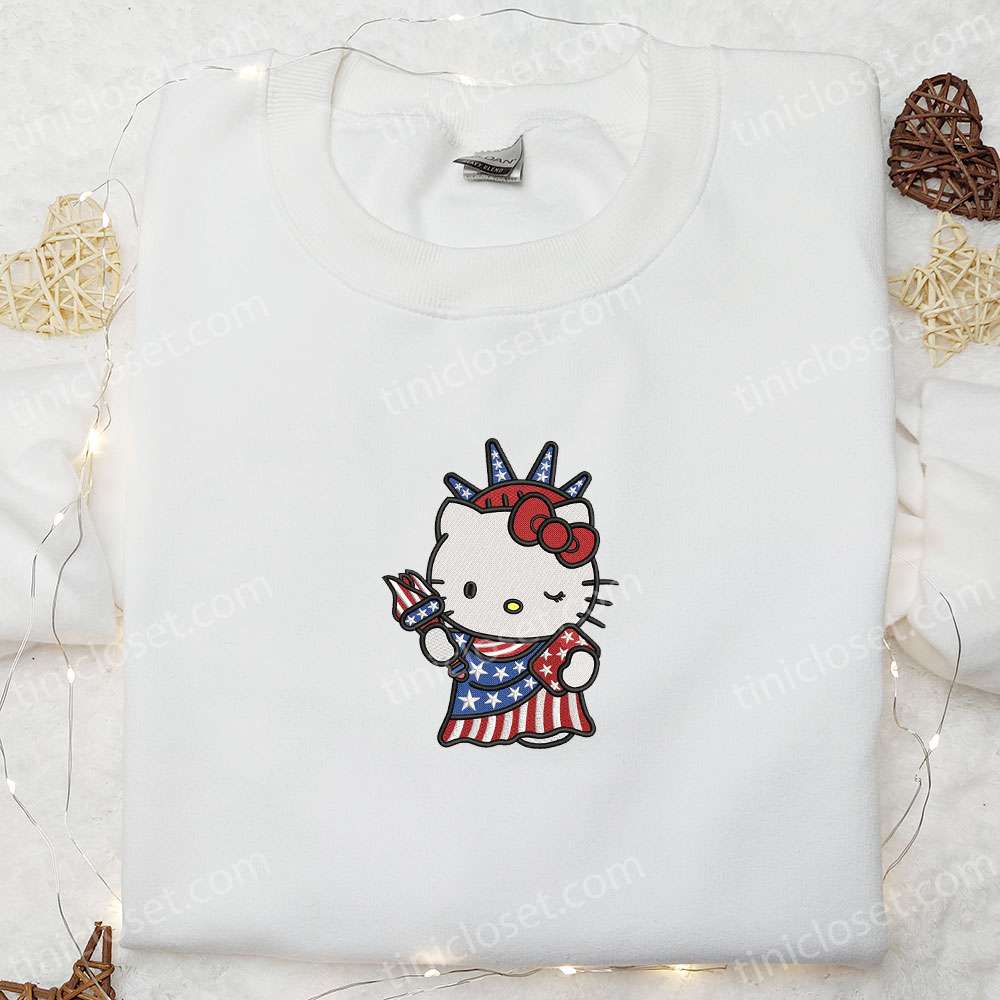 Hello Kitty Statue Of Liberty Embroidered Shirt