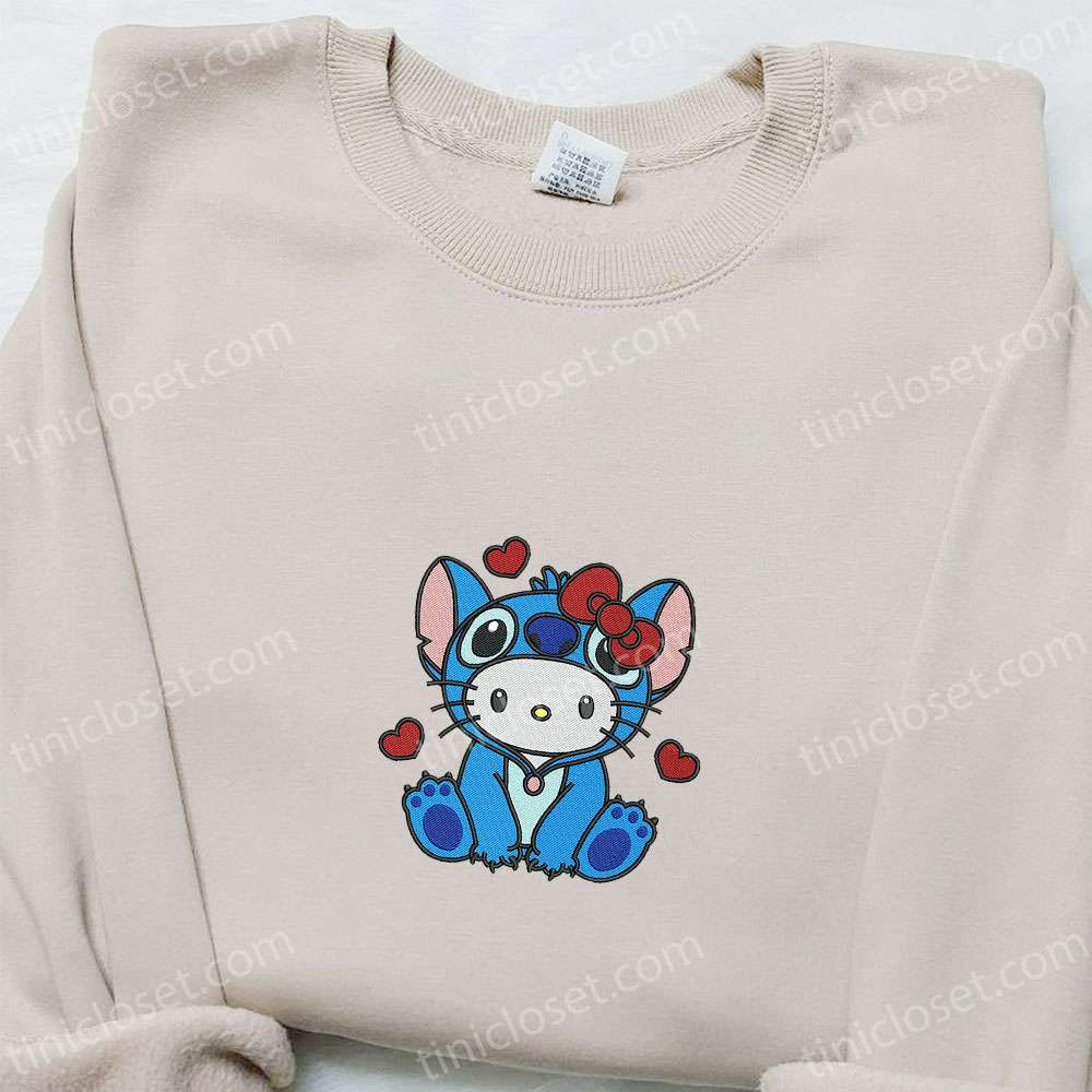 Hello Kitty Stitch Hearts Embroidered Shirt, Cartoon Embroidered Hoodie, Best Valentine Gift Ideas