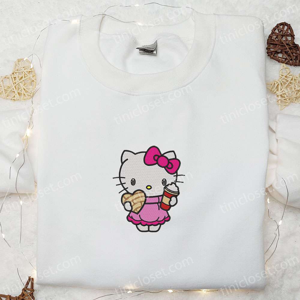 Hello Kitty Valentine Coffee Embroidered Shirt, Cartoon Embroidered Hoodie, Best Valentine Gift Ideas