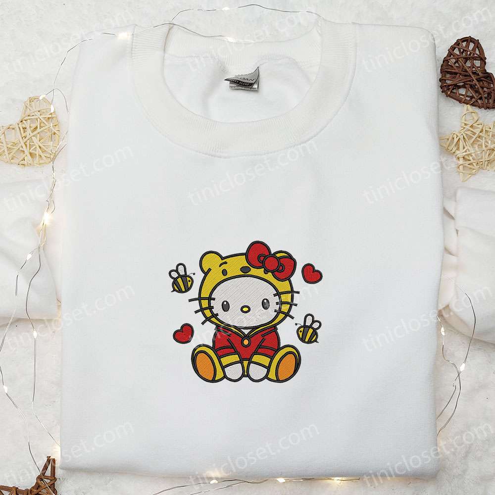 Hello Kitty Winnie The Pooh Heart Embroidered Shirt, Cartoon Embroidered Hoodie, Best Valentine Gift Ideas