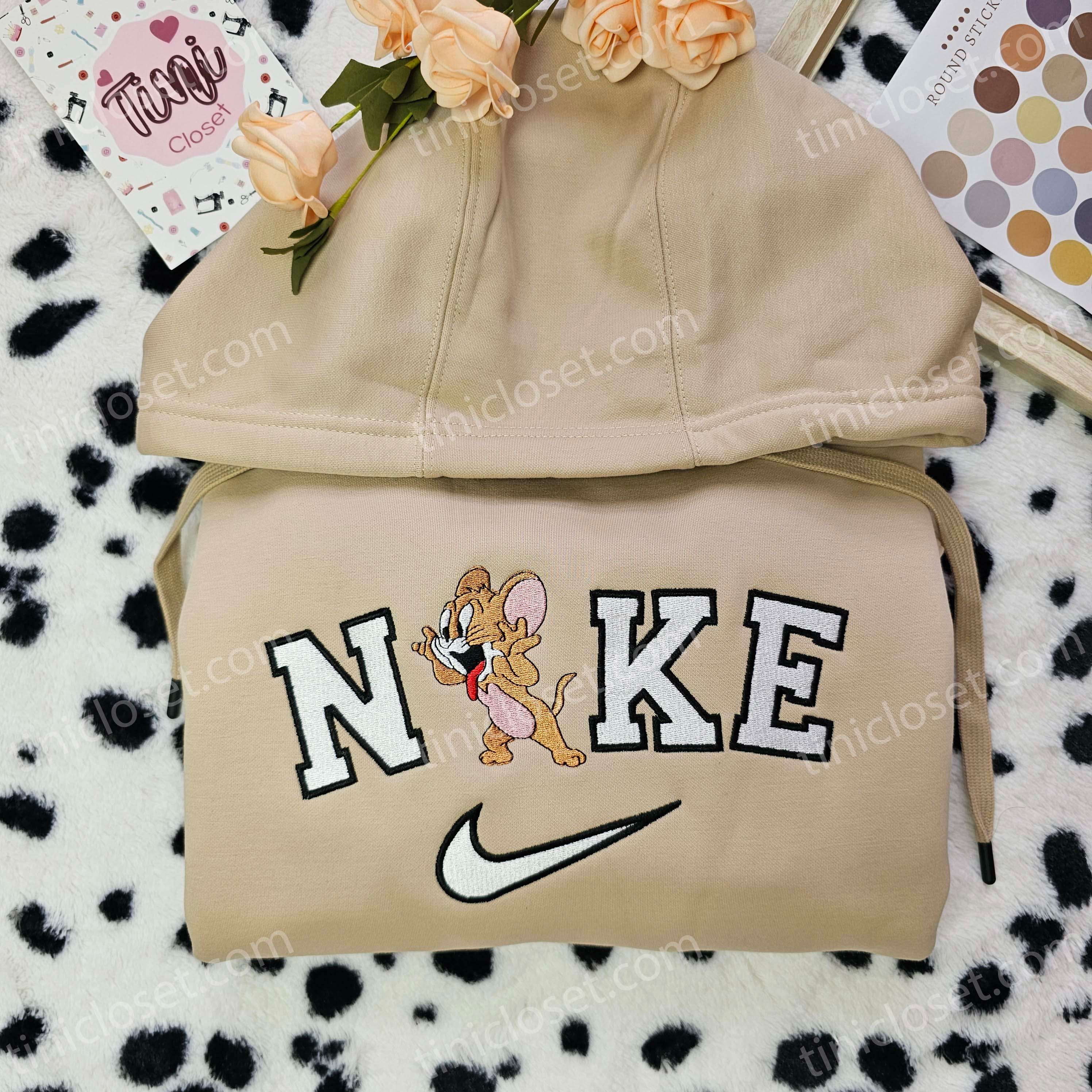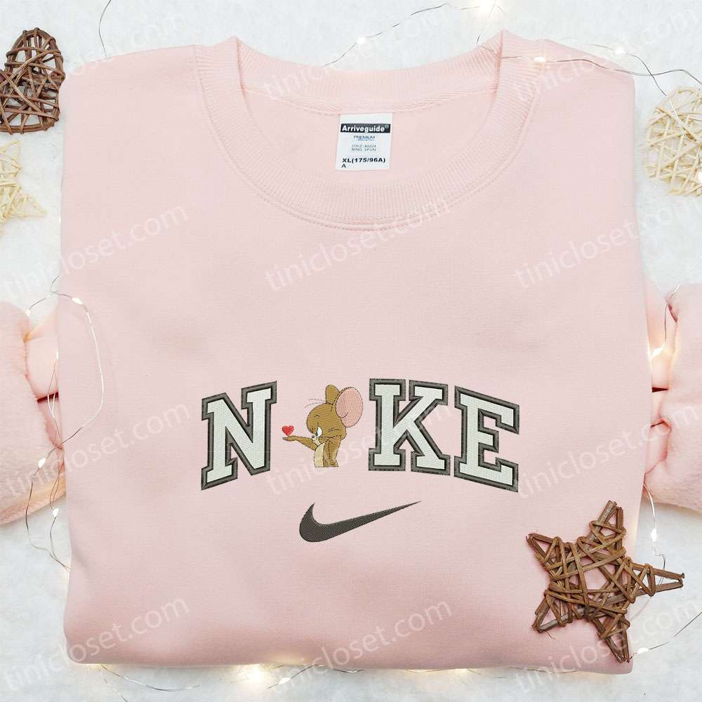 Jerry Love Heart X Nike Embroidered Shirt, Tom And Jerry Cartoon Embroidered Hoodie, Best Gift Idea
