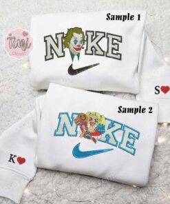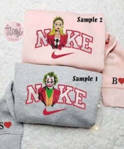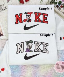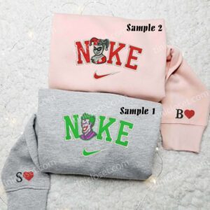 Joker And Harley Quinn X Nike Couple Embroidered Shirt, Movie Characters Embroidered Hoodie, Valentine’s Day Embroidered Sweatshirt