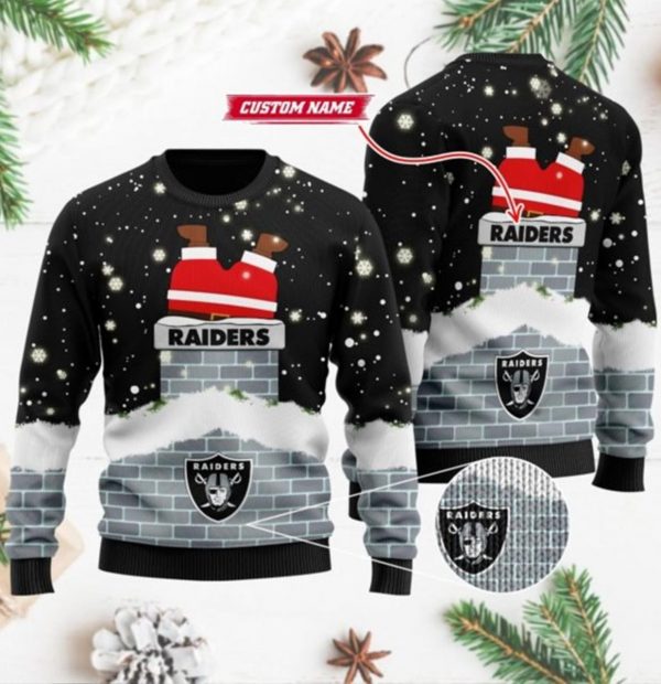 Las Vegas Raiders Nfl Football Team Logo Symbol Santa Claus Custom Name Personalized 3d Ugly Christmas Sweater