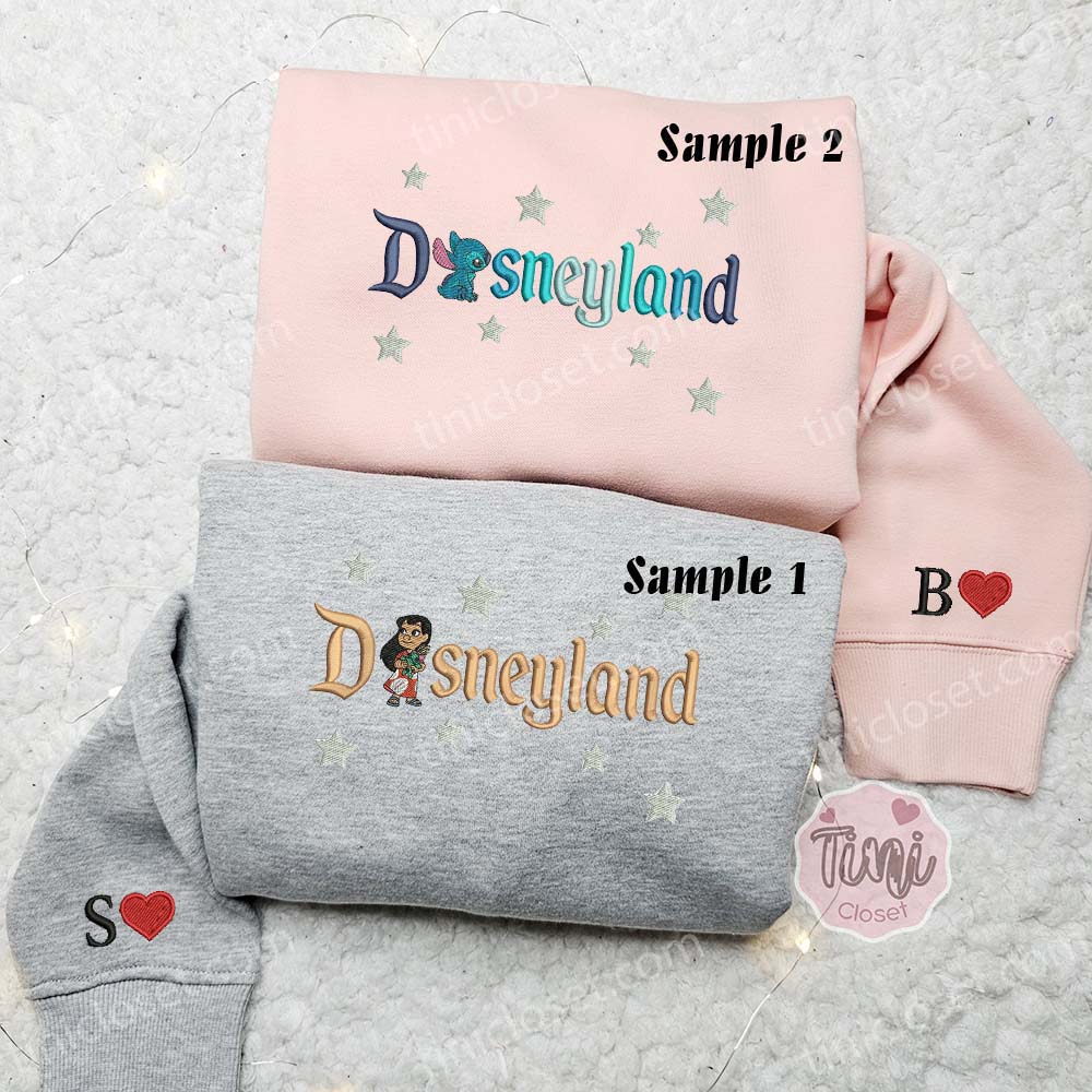 Lilo And Stitch Disneyland Embroidered Couples Shirts