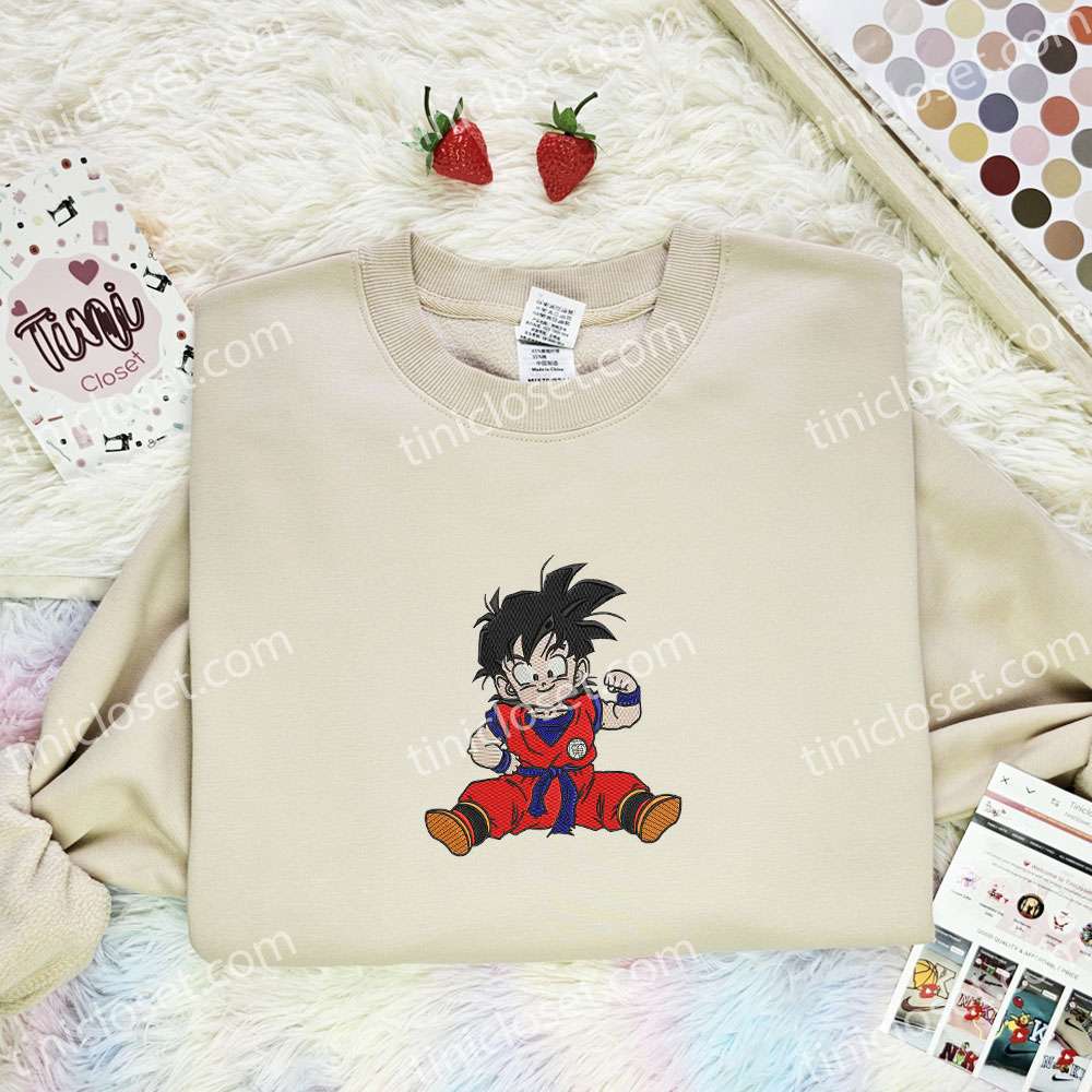 Little Goku Embroidered Shirt, Dragon Ball Embroidered Hoodie, Anime Embroidered Sweatshirt