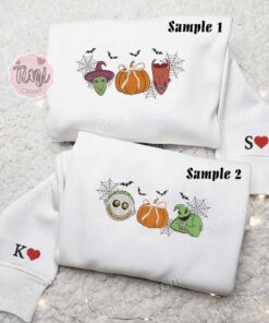 Lock Shock And Barrel And Boogie Pumpkin Halloween Embroidered Couples Shirts
