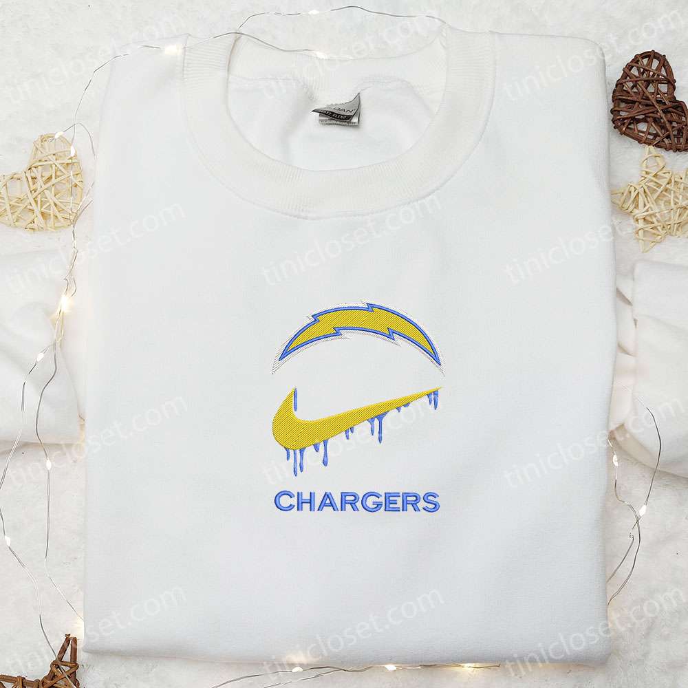 Los Angeles Chargers X Nike Swoosh Drip Embroidered Shirt, Nfl Sports Embroidered Shirt, Nike Inspired Embroidered Hoodie