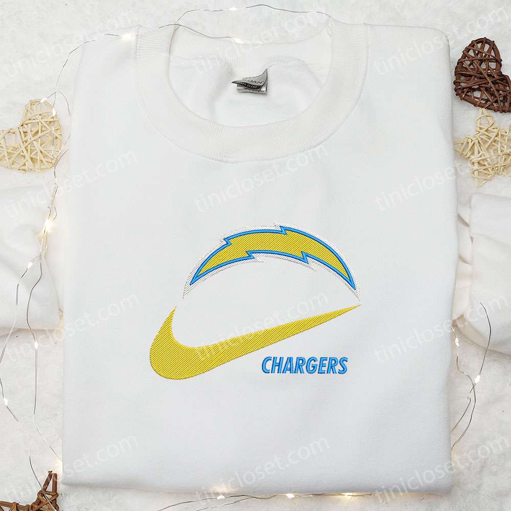 Los Angeles Chargers X Nike Swoosh Embroidered Shirt, Nfl Sports Embroidered Shirt, Nike Inspired Embroidered Hoodie