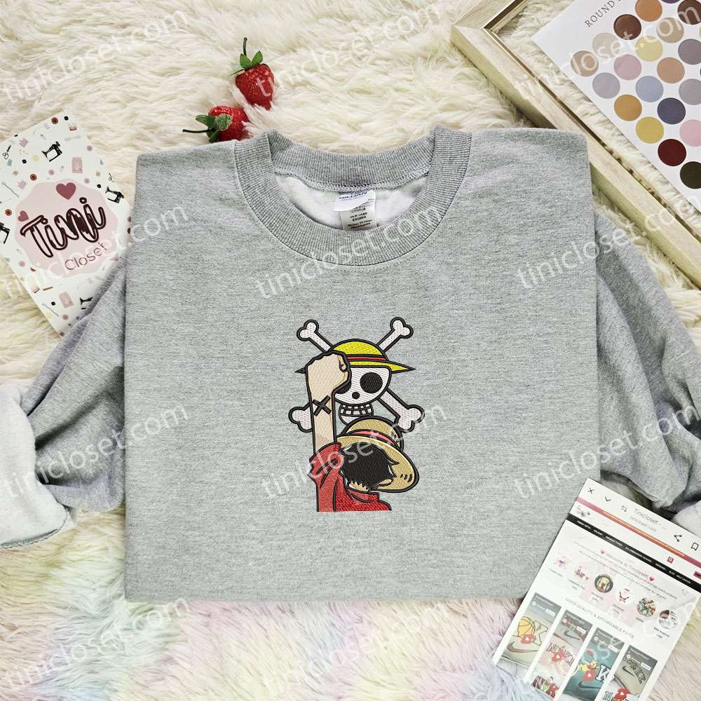 Luffy Straw Hat Crew Embroidered Shirt, One Piece Anime Embroidered Hoodie, Best Gift Idea