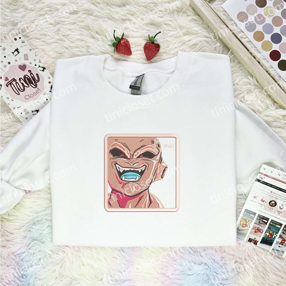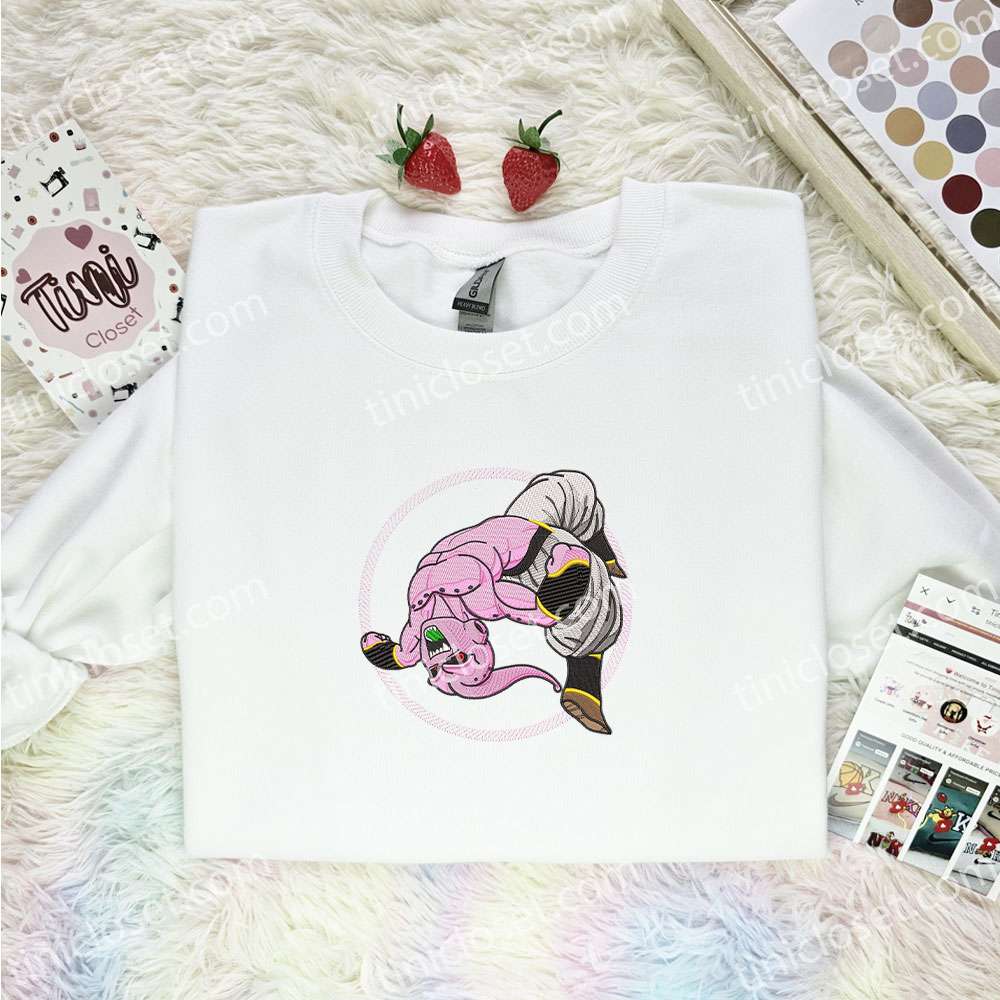 Majin Buu Embroidered Shirt, Dragon Ball Embroidered Hoodie, Anime Embroidered T-shirt