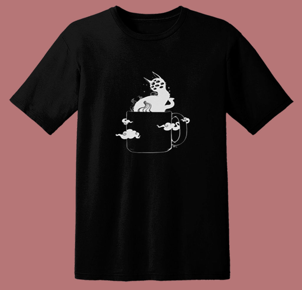 Many Eyed Cat In Coffee Cup 80s T Shirt
