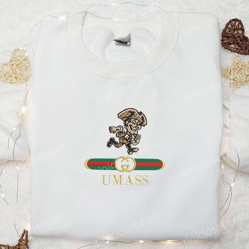 Massachusetts Minutemen X Gucci Embroidered Shirt, Ncaa Sports Embroidered Hoodie, Best Gift Idea